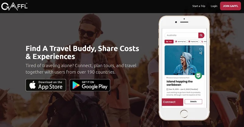 Gaffl is quite popular among budget solo travelers looking for travel companions